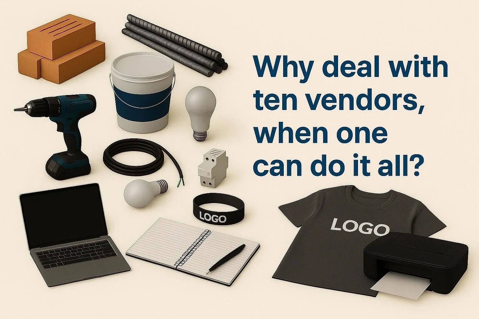 At Saksham Enterprises, we don’t just supply products - we simplify sourcing. From construction and electricals to IT essentials and custom branding, we deliver bulk solutions direct from OEMs. No middlemen. No confusion. Just quality, variety, and quick response - under one trusted name.